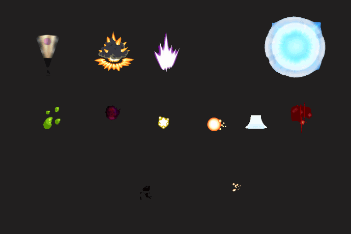 Each of them is exported as it's own sprite sheet with a transparent background ordered by row. Every asset has its dimensions on the file name.
